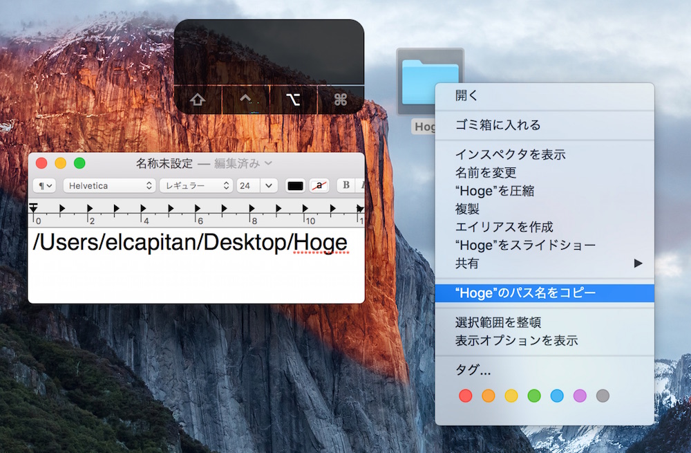 OS X 10.11 El Capitanではコンテキストメニューからファイルパスをコピーすることが可能になっています。詳細は以下から。