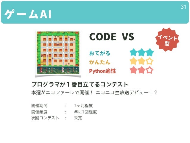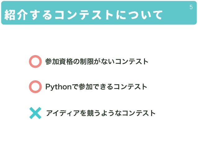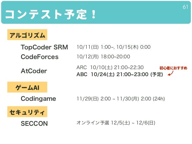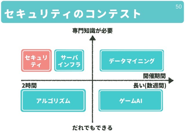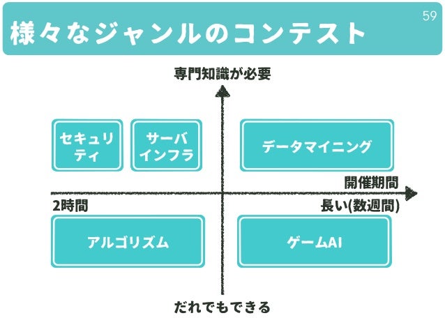 アルゴリズム・ゲームAI・インフラ・データマイニング・セキュリティのコンテストと、そのはじめかたを紹介していきます。