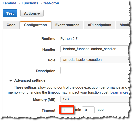 Lambdaをテストします。
