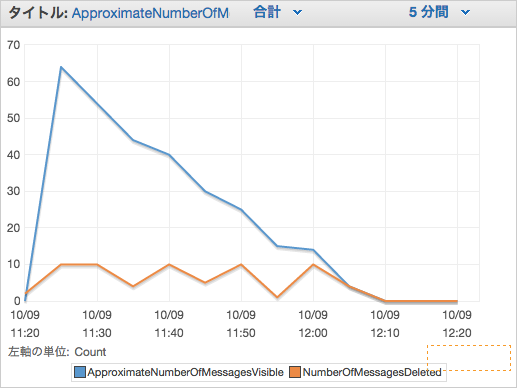 60程度のメッセージが5分毎に10程度ずつ減少していることが確認できます。