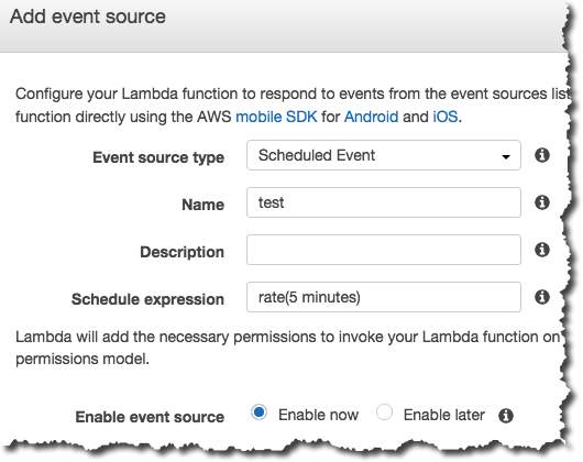 上記の処理を5分ごとに実行するためにLambdaのScheduled Eventの設定を行います。
