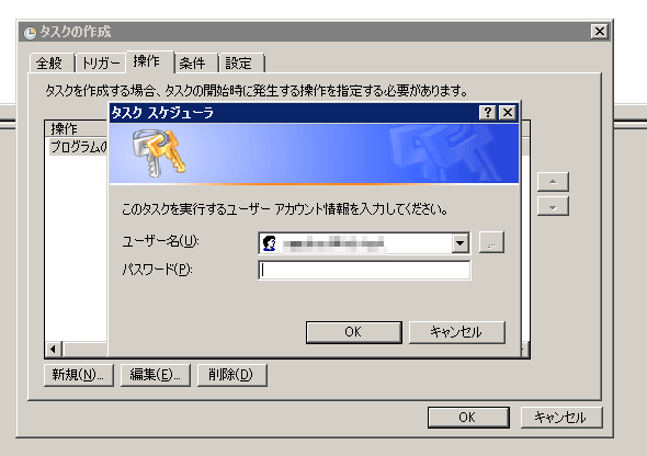【6】タスクの作成ウインドウが開きますので以下のように入力します。