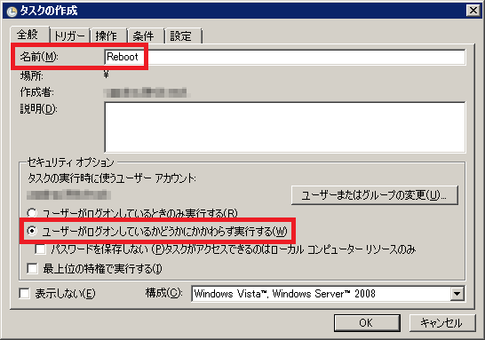【6-2】セキュリティオプションを「ユーザーがログオンしているかどうかにかかわらず実行する」