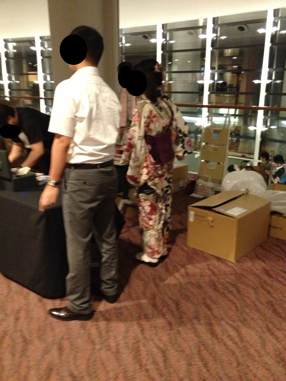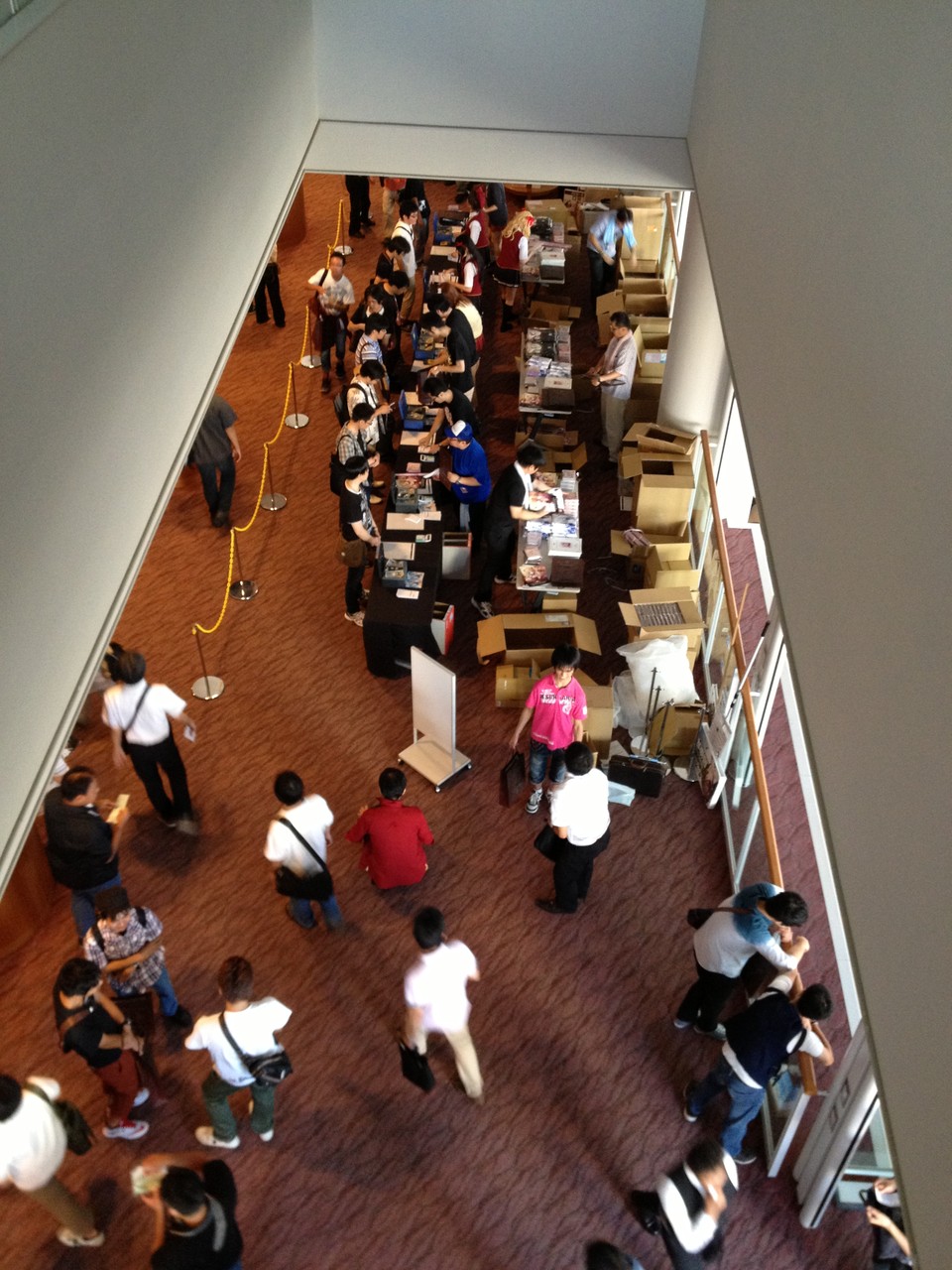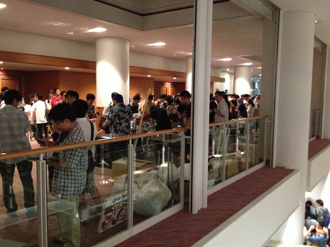 会場に入るために列ができてました。最後尾がどこなのかイマイチわかりませんでしたが、入場までは特に待たずスムーズに入れました。何かいろいろおいてあったので一眼レフを持っていけばよかったと後悔。