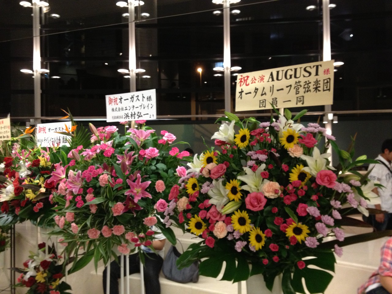 関連企業等からのスタンド花。オータムリーフ管弦楽団。エンターブレイン、TGL企画・戯画。