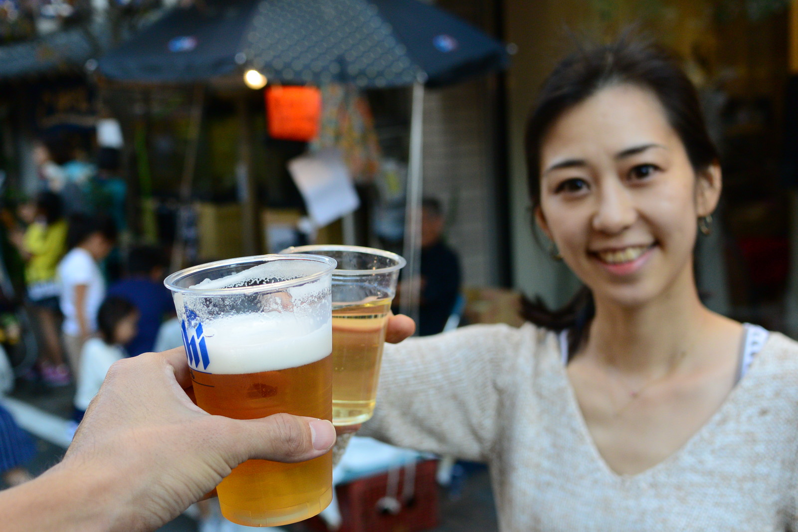 歩きながら乾杯も。祭りの幸せ。