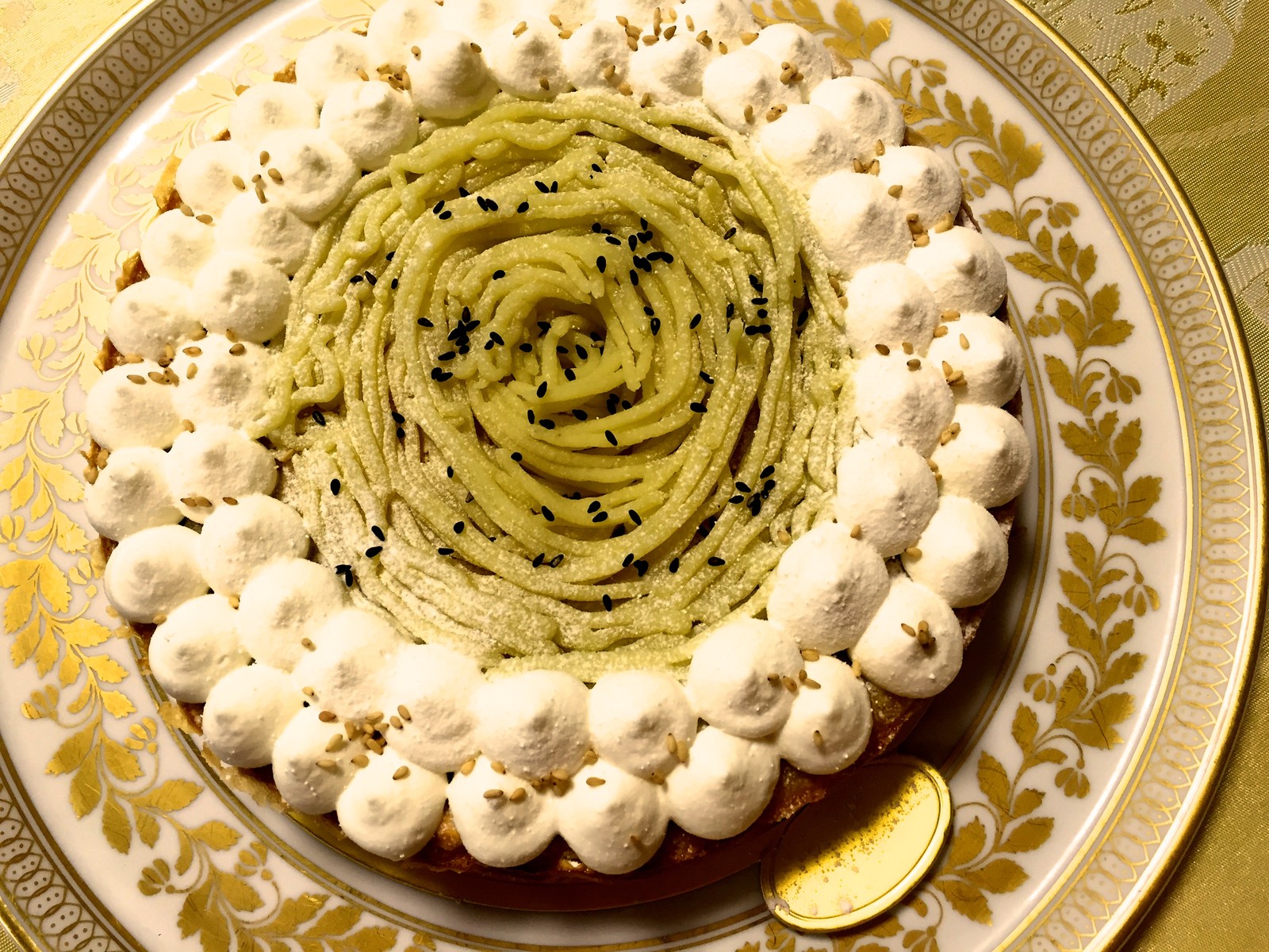 母のお稽古に、モンブランのケーキを届けに。