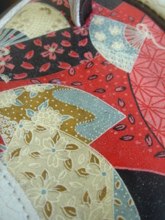 副社長が考案した、中敷に和柄の和紙を用いて特殊コーティングした新製品が
