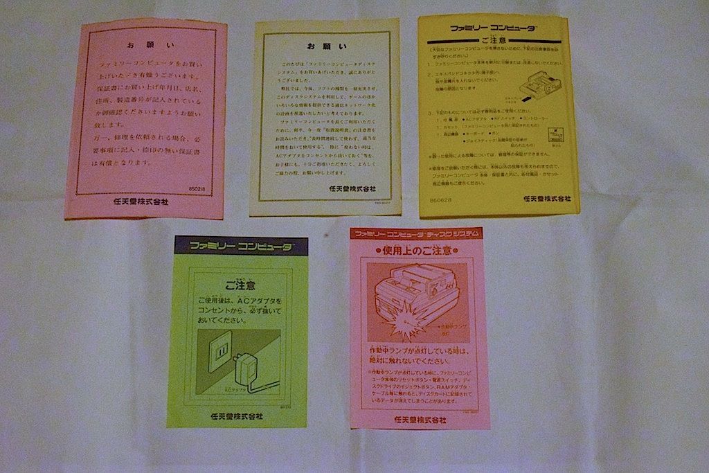 主にFC本体や周辺機器に同梱されていた注意書きのチラシ類