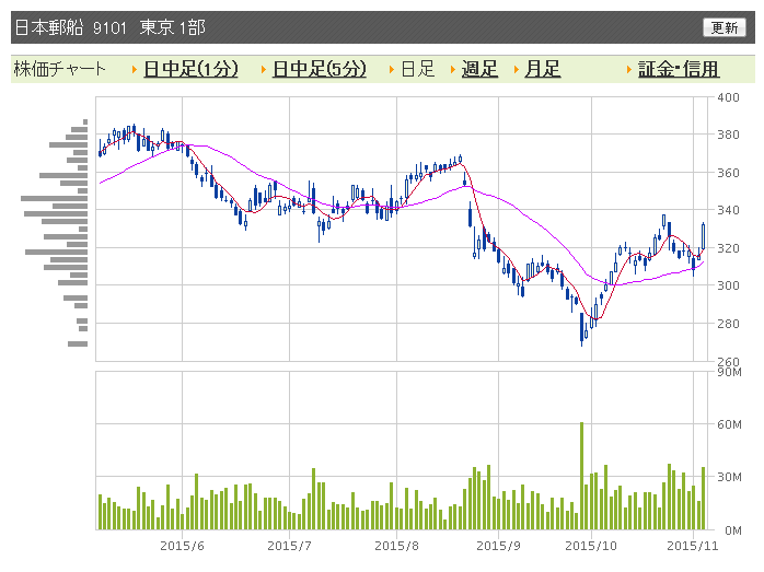 3社の中で日本郵政の上げがショボイのは、まちがって日本郵船に買いが行っちゃってるからでよろしいか?