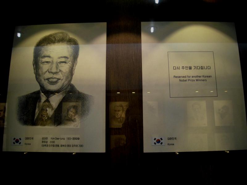 ソウルの教保文庫(書店)にあるノーベル賞受賞者の肖像を飾る空のギャラリー