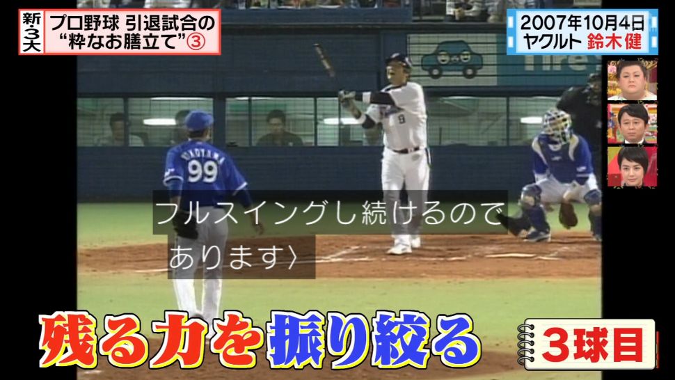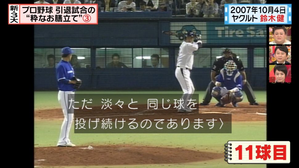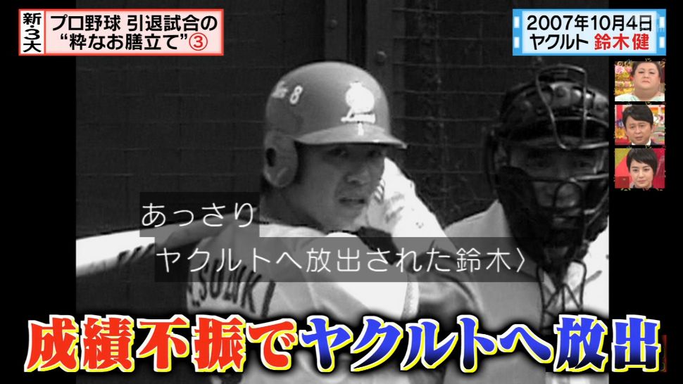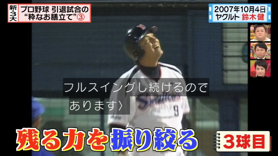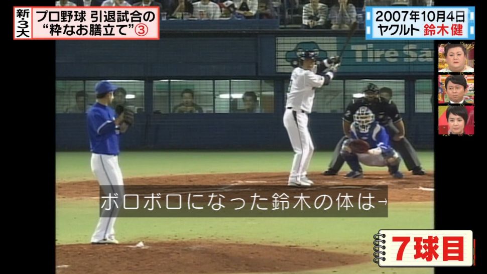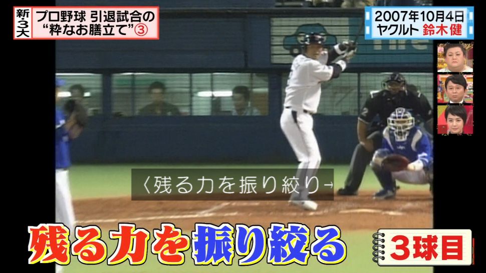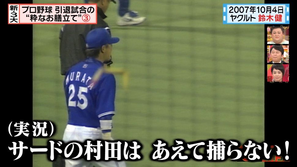 新三大「プロ野球引退試合まさかの結末」って回でやってる。
