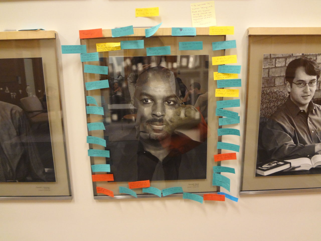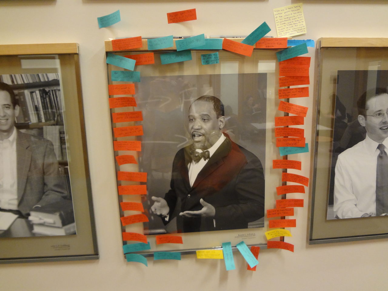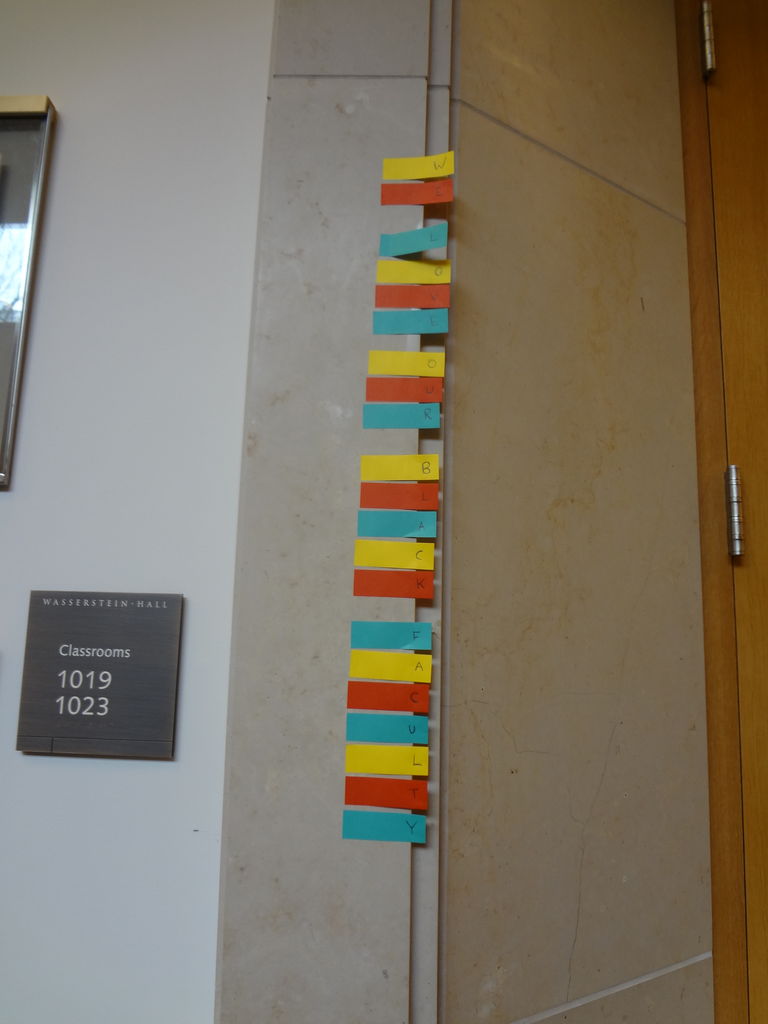 今、黒いテープを貼られていた教授陣の顔からはそれがされ、代わりに学生たちが思い思いのポストイットに教授陣に対する感謝の言葉を書いて、貼り付けている。