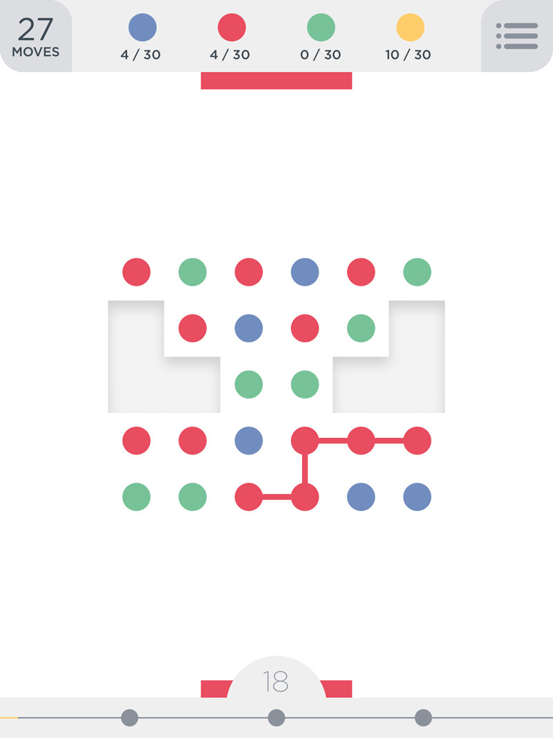 隣合った同じ色どうしのドットをつなぐと消えて上のドットが落ちてくる、シンプルなパズルゲーム。面をクリアするには、各色のドットを決められた数だけ消さなければなりません。面によってはイカリマークなど変わったドットも用意されているようです。