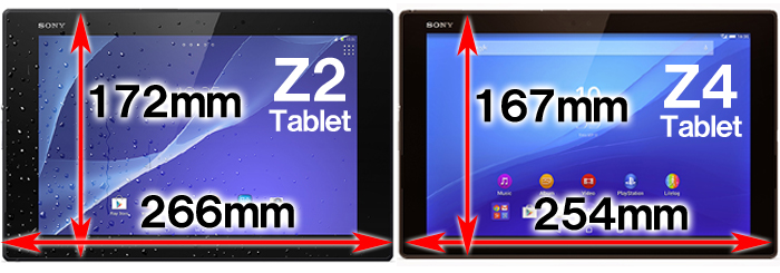 XPERIA Z4 TabletとXPERIA Z2 Tabletの厚さ、大きさ、重さの違い