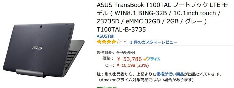 一方T100TALの現在のAmazonでの販売価格は約5万4000円です。