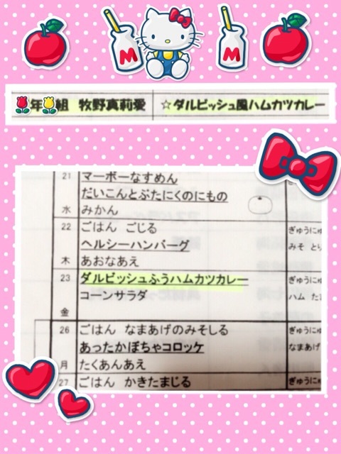 『こんだて表♪*゚』牧野真莉愛