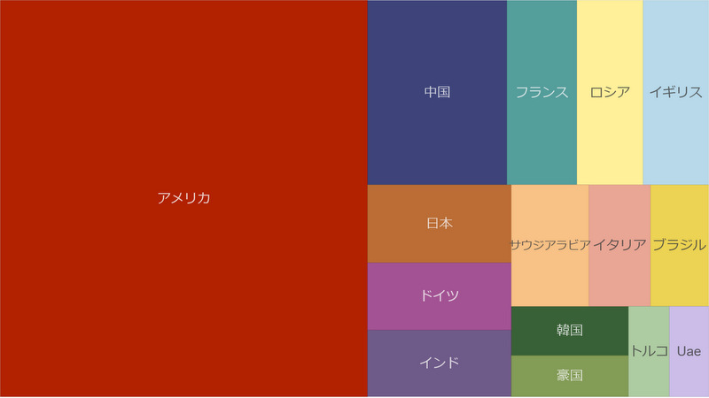 ツリーマップによる各国防衛費の比較