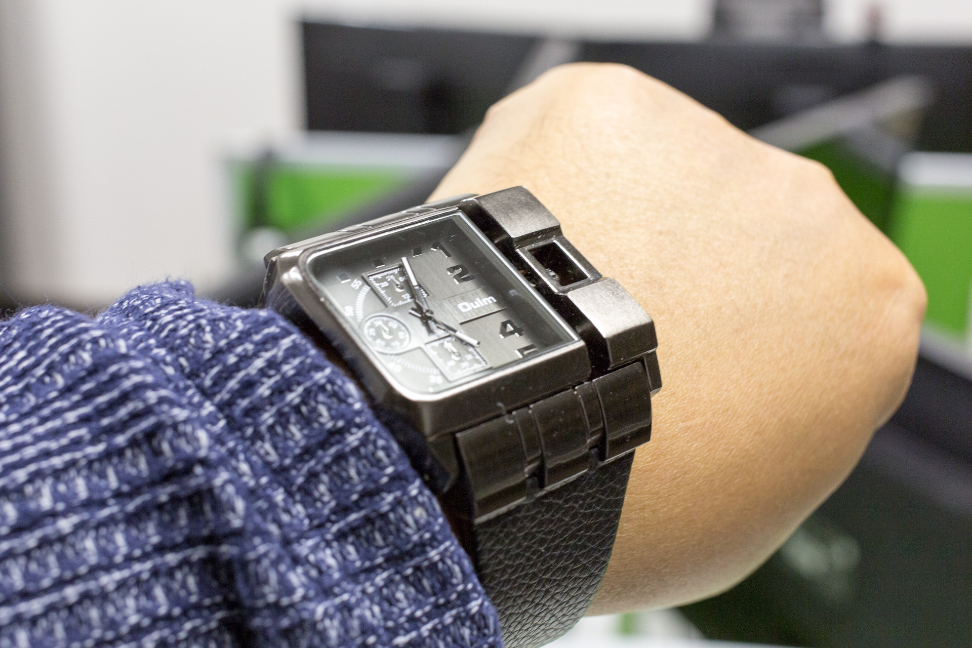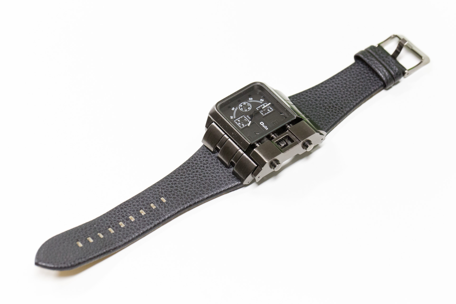 こちらが購入した腕時計、Oulm 3364 クオーツウォッチ ブラック。