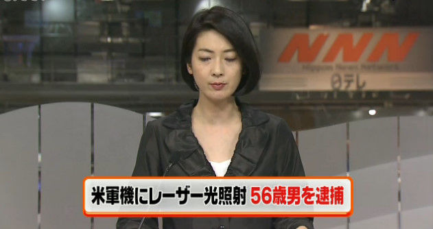 12月7日放送、日本テレビ系「ヒルナンデス」のニュースで、米軍普天間飛行場の周辺上空を飛行中の米軍機にレーザー照射して墜落させようとした問題で、威力業務妨害容疑で県内に住む会社経営の平岡克朗を逮捕したと報道。