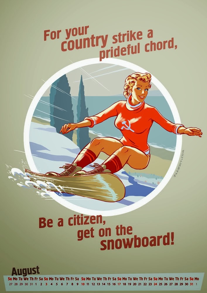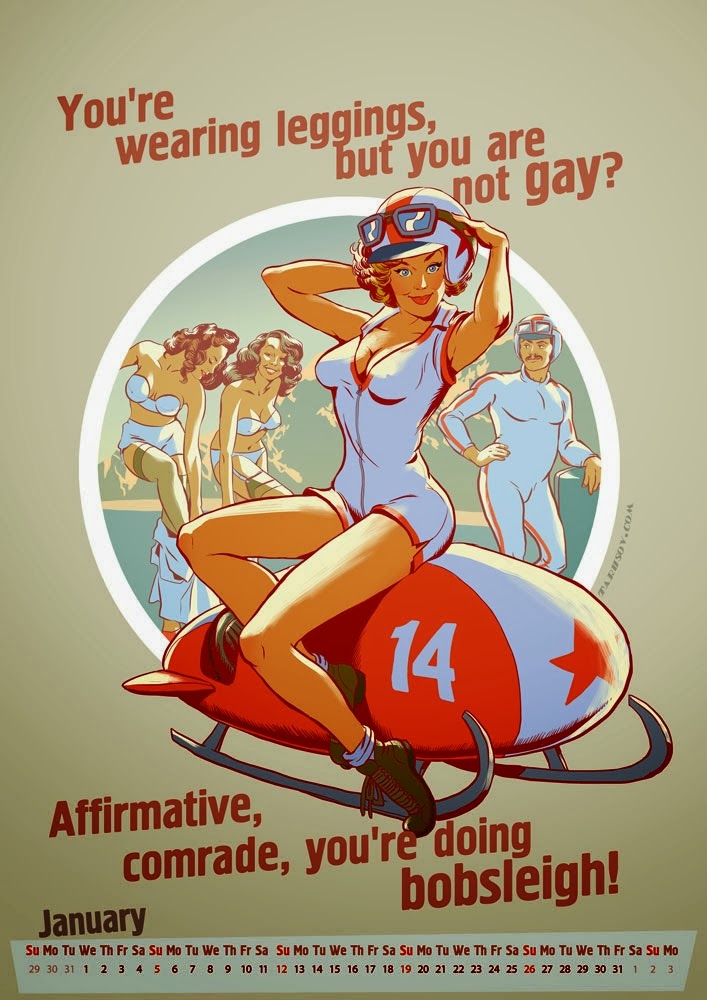 En 2012 el ilustrador ruso Andrew Tarusov quiso homenajear a Gil Elvgren en un apocaliptico calendario. El exito de la propuesta le llevo a repetir experiencia al año siguiente con un calendario dedicado al cine de terror clasico. Para 2014, Tarusov se inspira en los Juegos Olimpcios de Invierno que se celebran en la ciudad rusa de Sochi, combinando la estetica pin-up con el cartelismo sovietico clasico