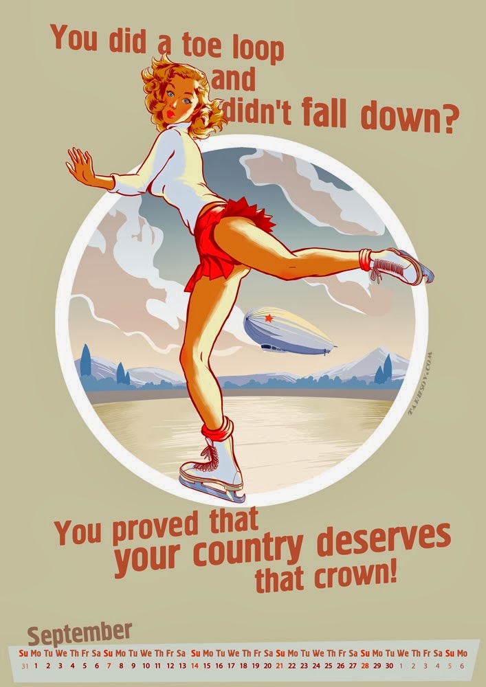 En 2012 el ilustrador ruso Andrew Tarusov quiso homenajear a Gil Elvgren en un apocaliptico calendario. El exito de la propuesta le llevo a repetir experiencia al año siguiente con un calendario dedicado al cine de terror clasico. Para 2014, Tarusov se inspira en los Juegos Olimpcios de Invierno que se celebran en la ciudad rusa de Sochi, combinando la estetica pin-up con el cartelismo sovietico clasico