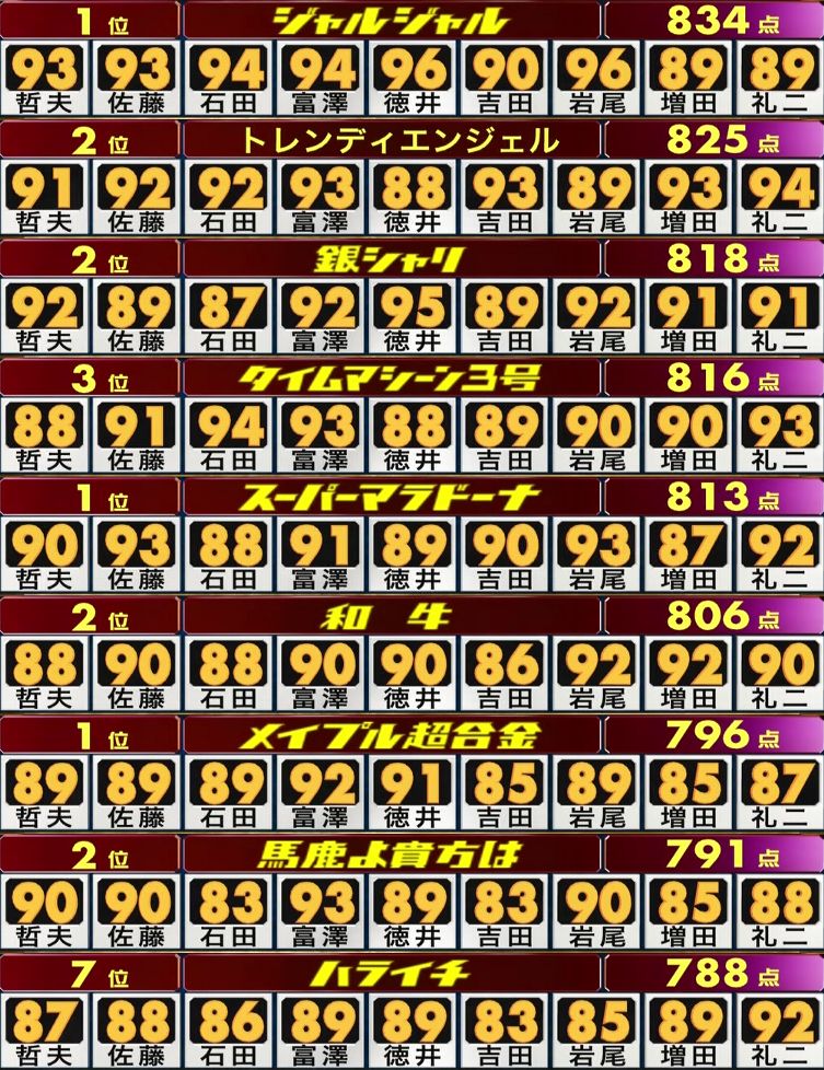 全体的にウケてたとはいえもうちょい点数に差をつけて審査してほしかったな