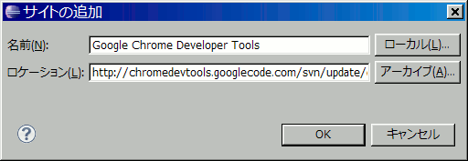 「ロケーション(L)」→「http://chromedevtools.googlecode.com/svn/update/dev/」