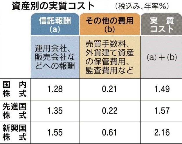 いずれにしてもこの実質コストは、新興国関連ファンドや、売買の頻度が高いアクティブ型のファンド、そして純資産の規模が小さいファンドが大きくなりがちと記事では分析しています。