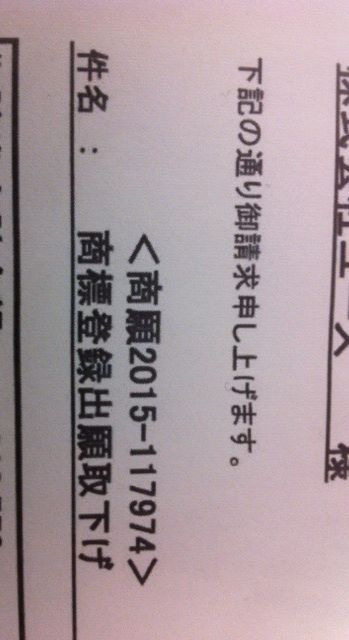 商標取り下げの件ですが、まだご心配してる方がいらっしゃると思いますので