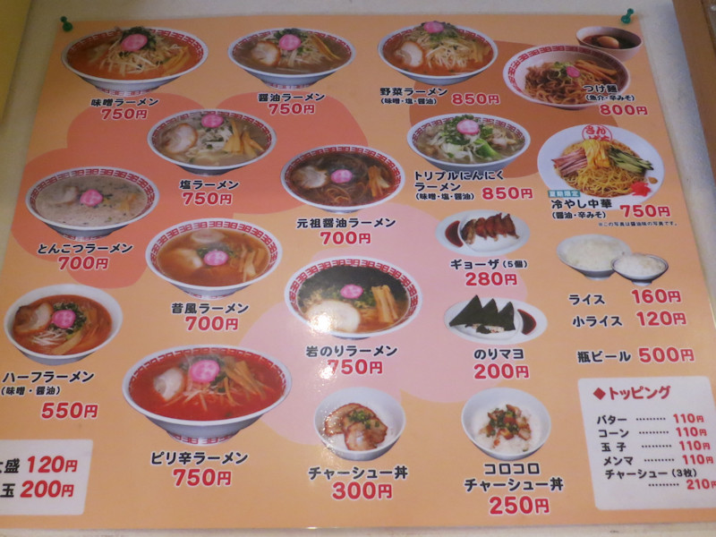 メニューは味噌が基本ですが、醤油、塩、つけ麺と揃っていて、野菜多め系や辛い系、などなど変化球もそこそこあって、まあ、近ければ全部食べてみるのも面白いですね。