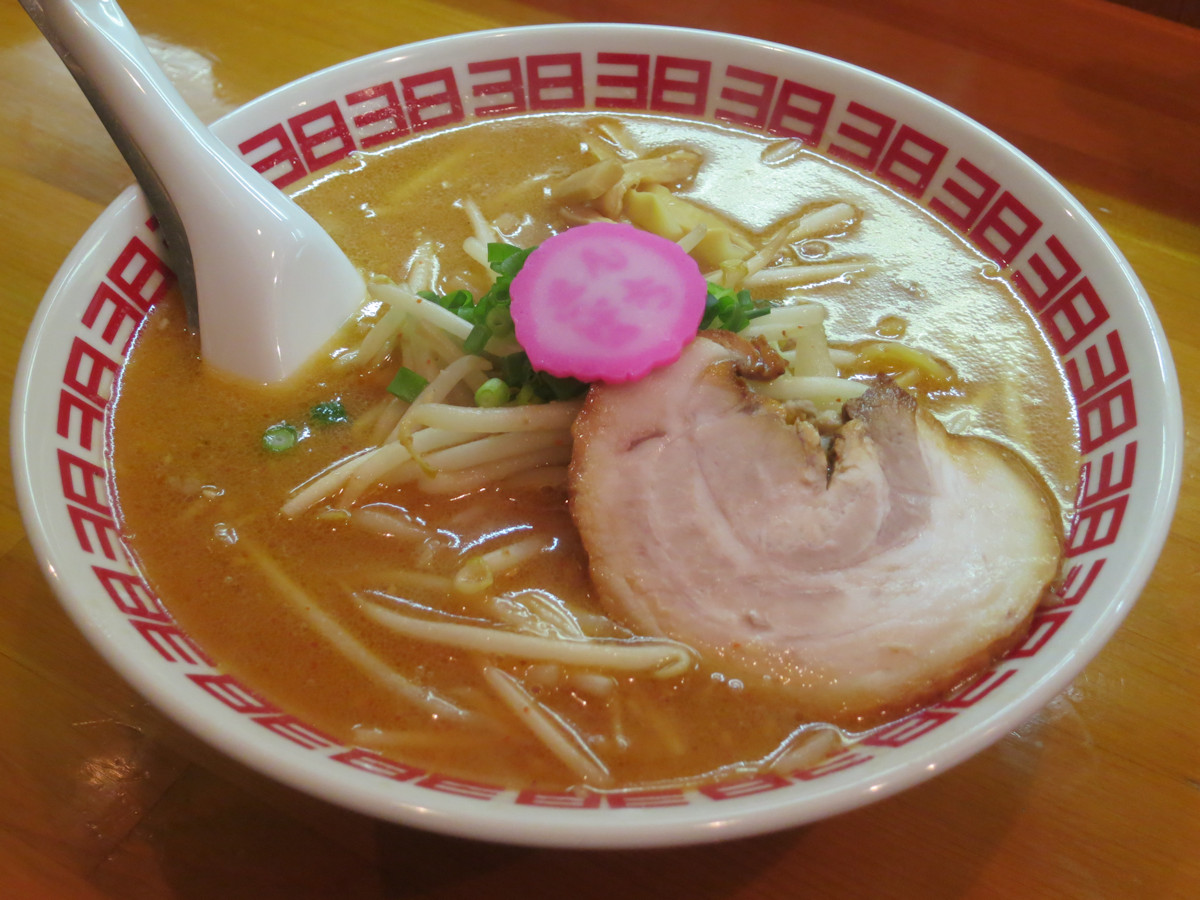 程なくして味噌ラーメン750円、双喜紋ならぬ38紋の丼に並々とスープが注がれた麺相。