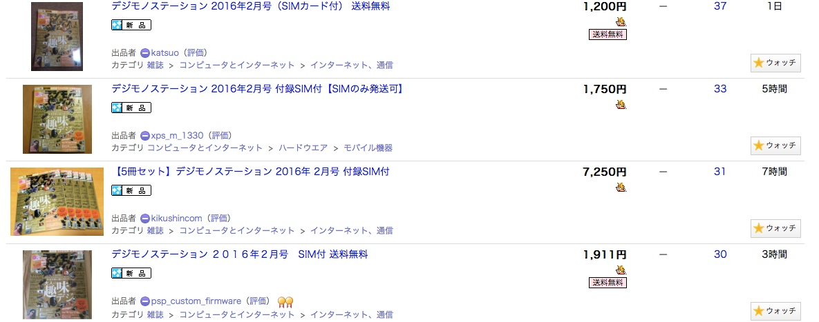 神SIMが付録になっていると話題となったデジモノステーション 2016年02月号。すでにヤフオクでは2000円近い値段となっている。