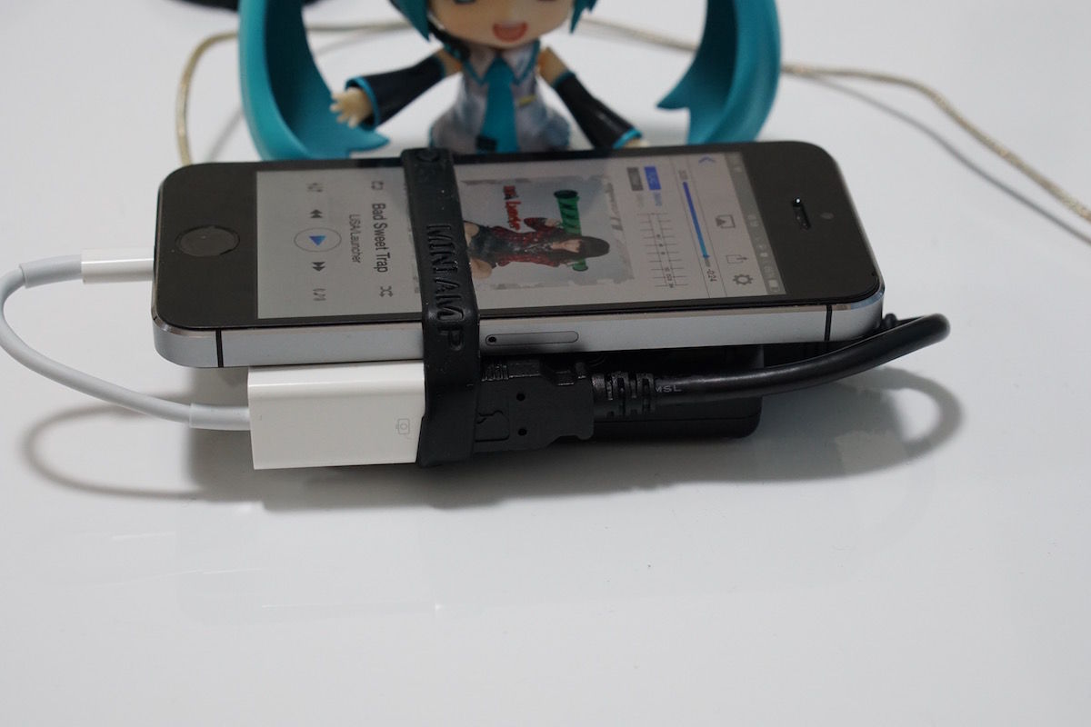 わたしは同軸や光に対応したDAPをもっていませんので、手持ちのiPhone 5sを接続することにしました。個人的なおすすめはiPhone(5s以降)やiPod Touchとの接続です。全てデジタル接続なので、UIへの慣れなんかで決めてもいいんじゃないかなと思ってます
