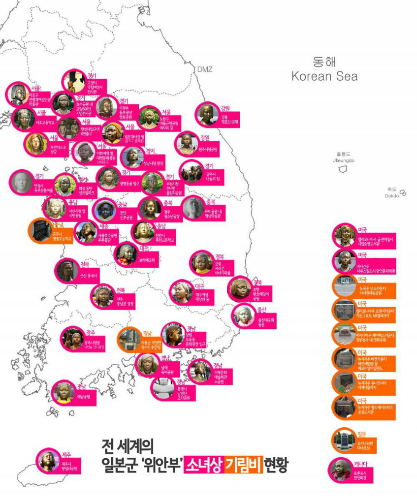 全世界に設置されている慰安婦少女像のマップ