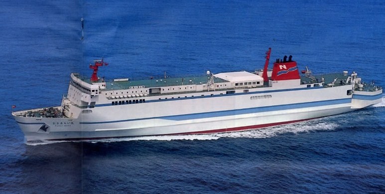 日本の長距離カーフェリー史の最初を飾った、阪九フェリー神戸 - 福岡・小倉航路の第一船。