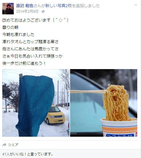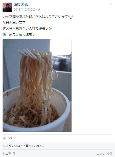 カップラーメンの容器、後ろの壁、農業関連、夕飯画像の机・食器など、リアルな知り合いなら、気づきそうなものだが。