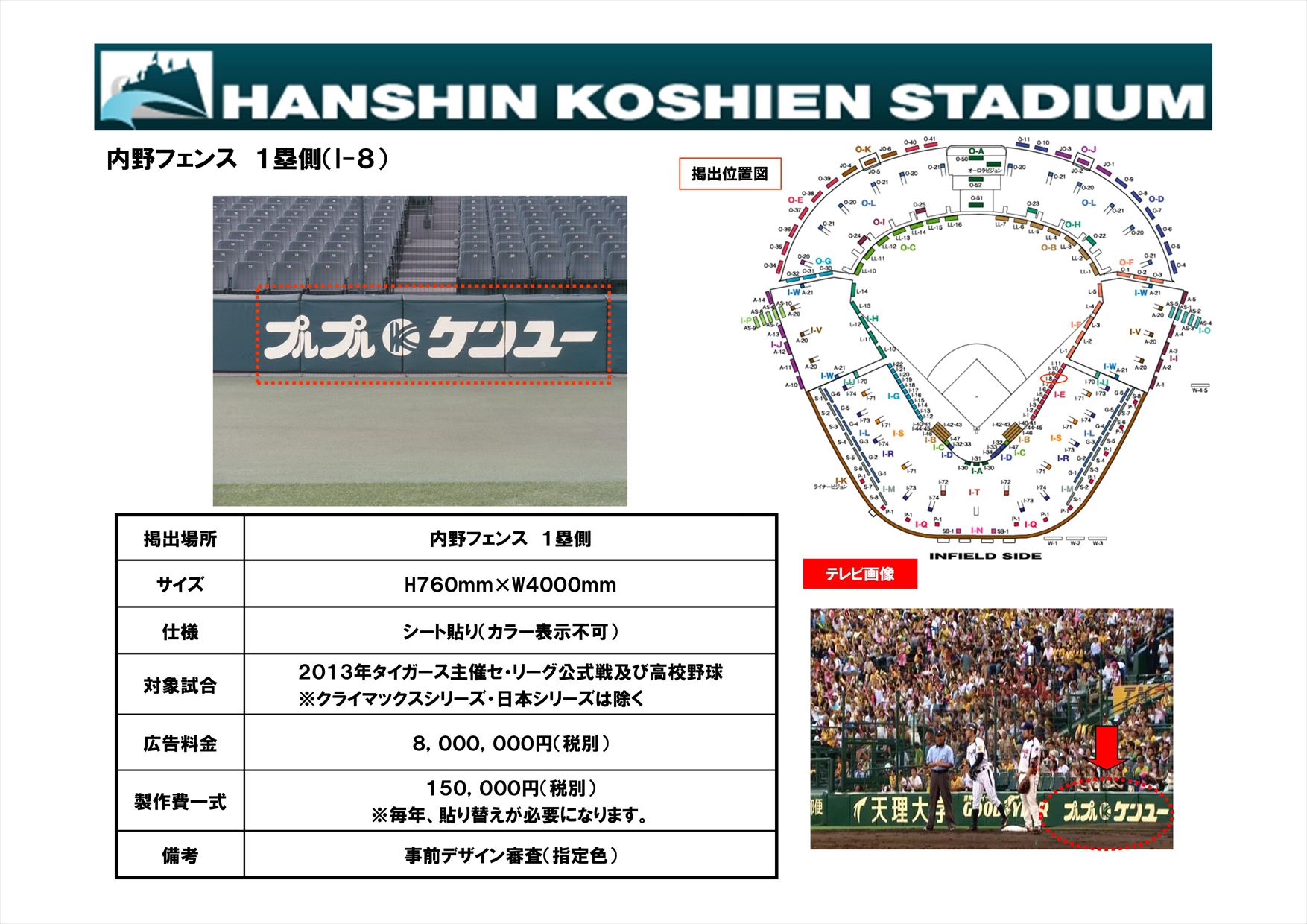 東京ドーム外野超大型看板 1億5000万(制作費300万 ホームラン直撃時は100万以上の賞金か商品)