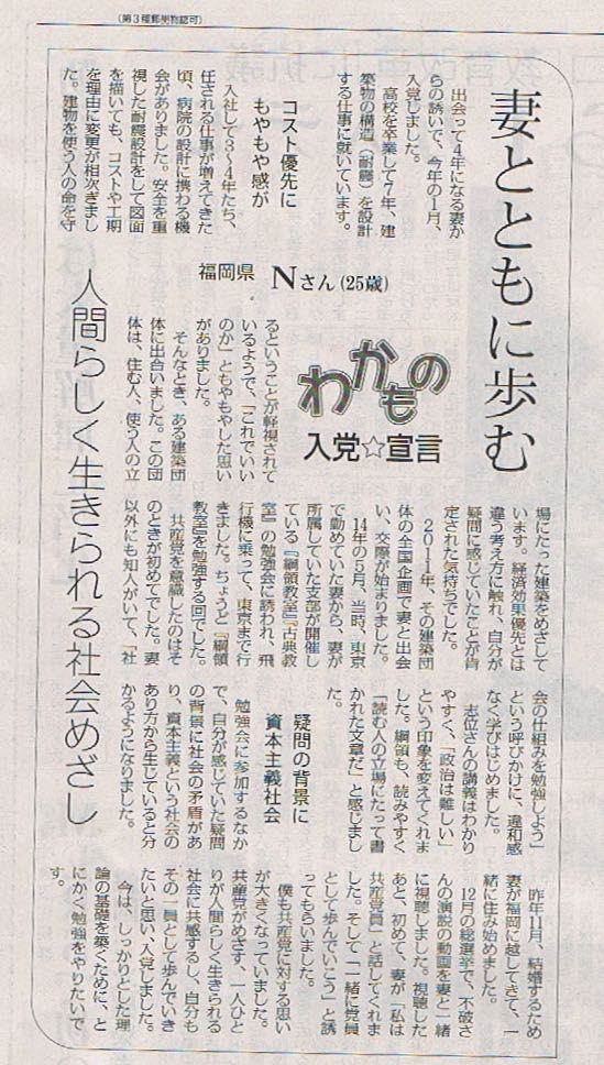 きょうの赤旗・わかもの入党宣言