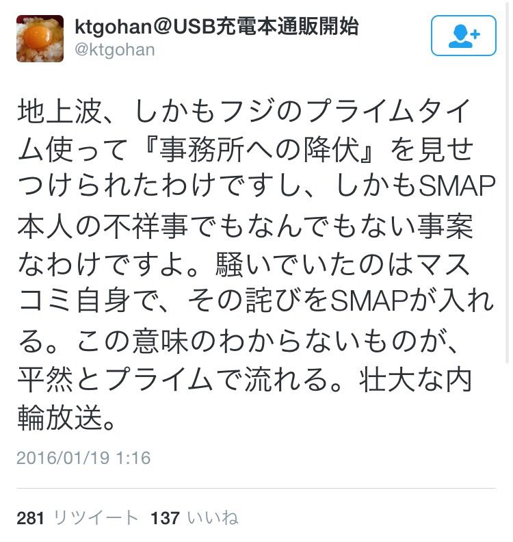昨日のSMAP×SMAP放送で一件落着とされているSMAP解散騒動。