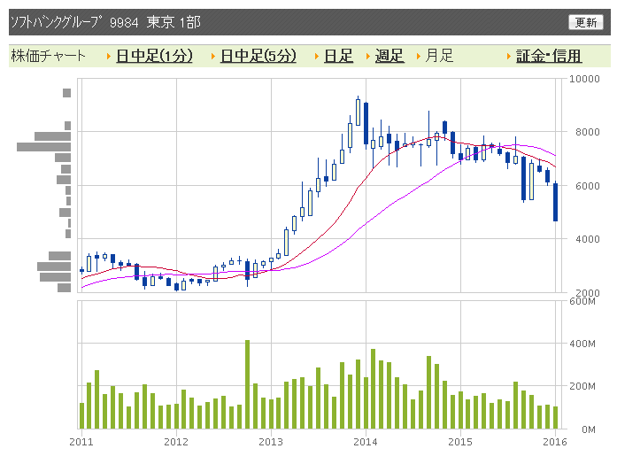 ソフバンよくみたらアベノミクス最高値から半額か