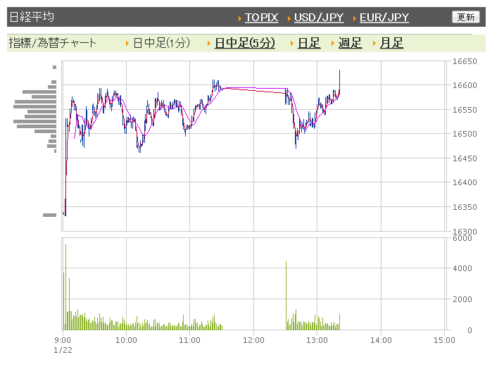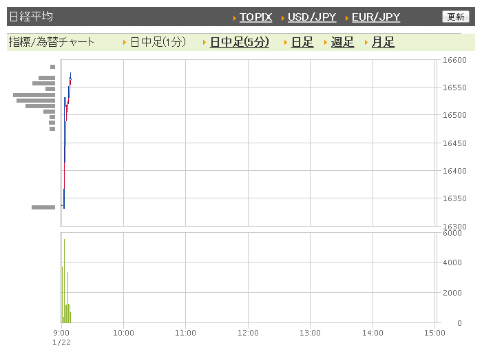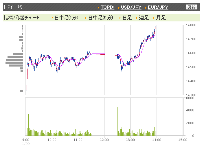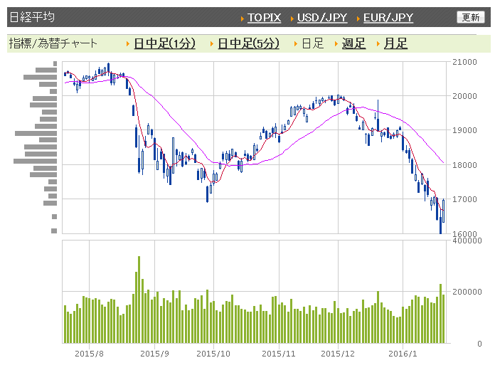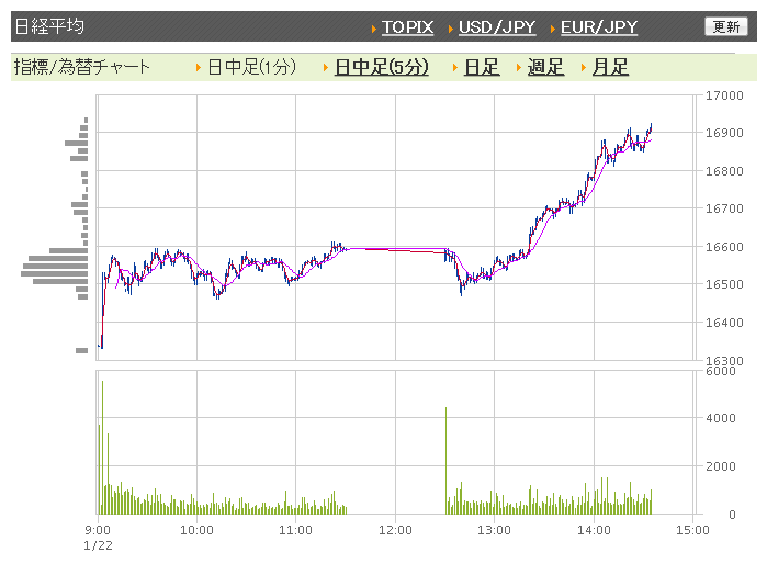 ※2016年1月22日の終値1万6958.53円(+941.27円)