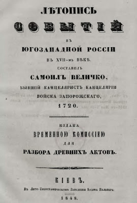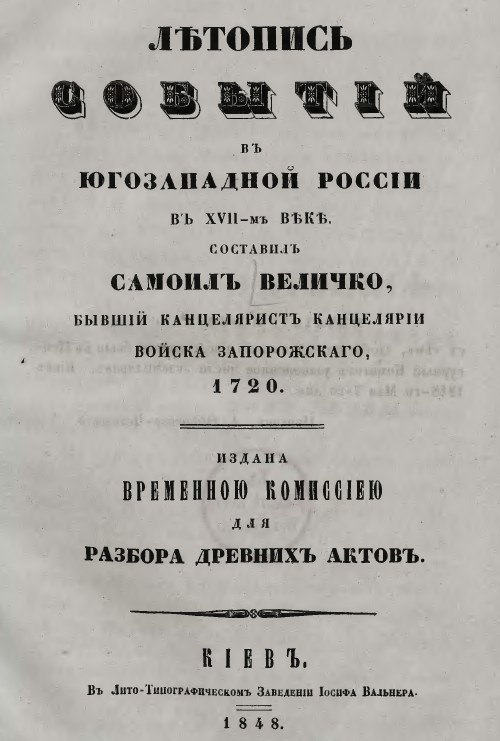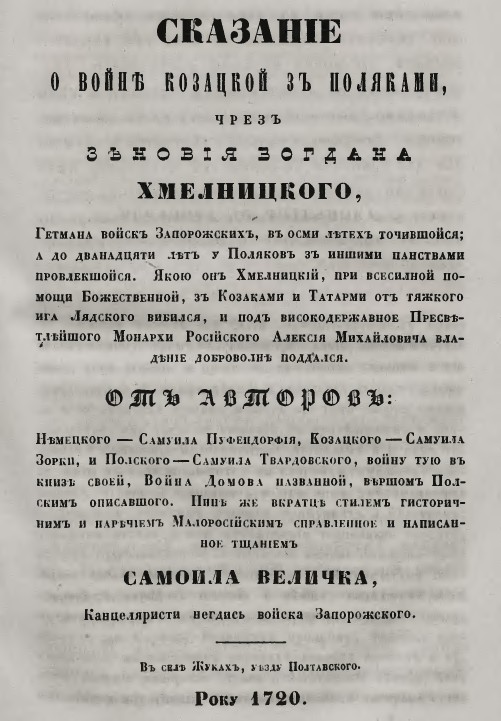 Самійло Величко. Лѣтопись событій въ югозападной Россіи въ XVII-мъ вѣкѣ. 1720