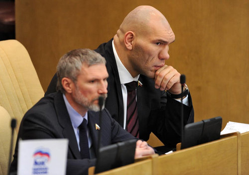 男性はニコライ・ワルーエフさんで現職のロシア下院議員、そしてボクシングの元ヘビー級世界チャンピオンだそうです。これくらい野性味がないと、ロシアの議会ではやっていけないのかもしれませんね。