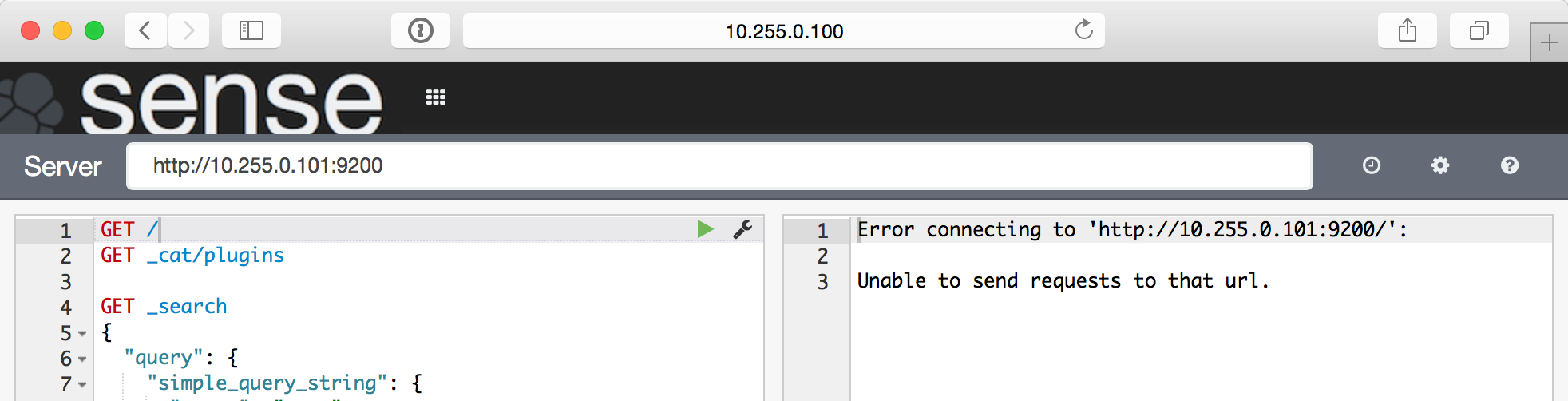 異なるサーバにAPIを実行したい場合、Serverにドメイン(IPアドレス)で指定してください。ちなみにAPIはローカルからの発行ではなく、Kibanaが動作しているホストから発行されます。