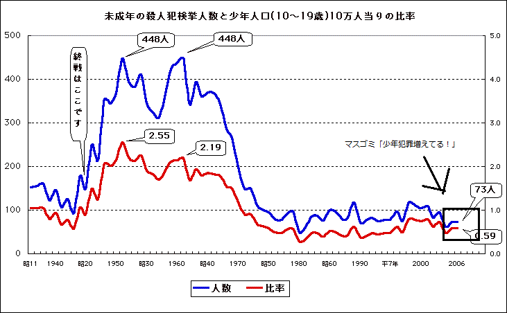 じゃあ次はその「平成に入って少年犯罪が増えた」と主張している輩が
