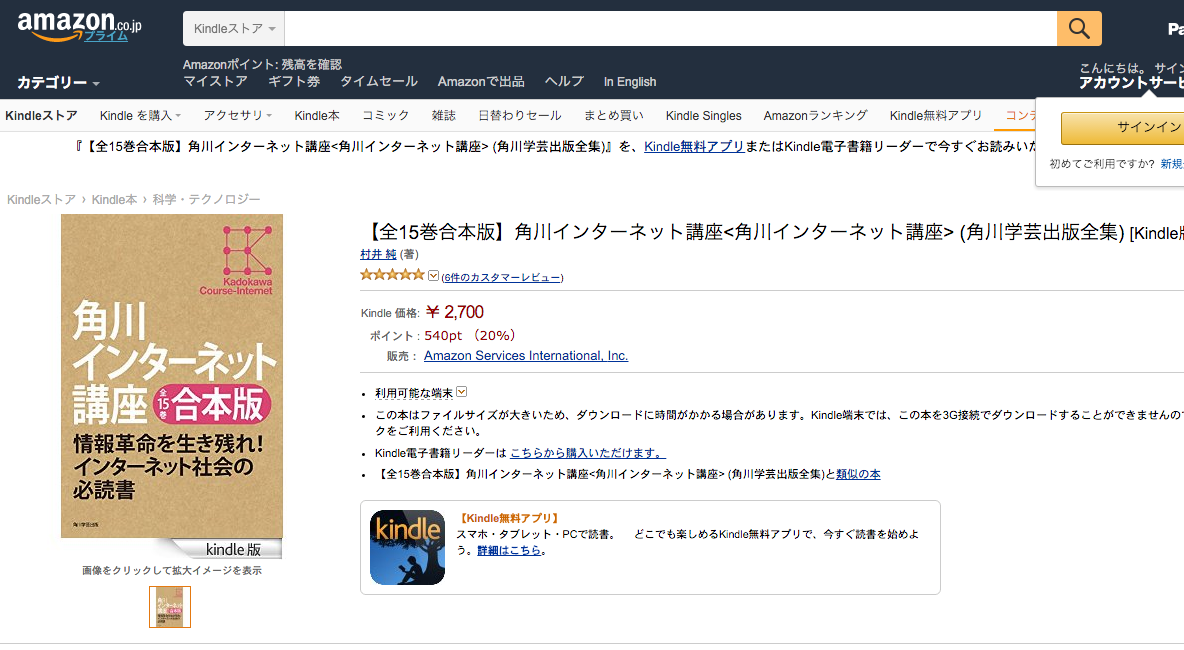 Kindleランキングトップは角川インターネット講座15巻セットか、そりゃそうだ、そりゃそうだよ…。ちょっと衝撃の値付け。