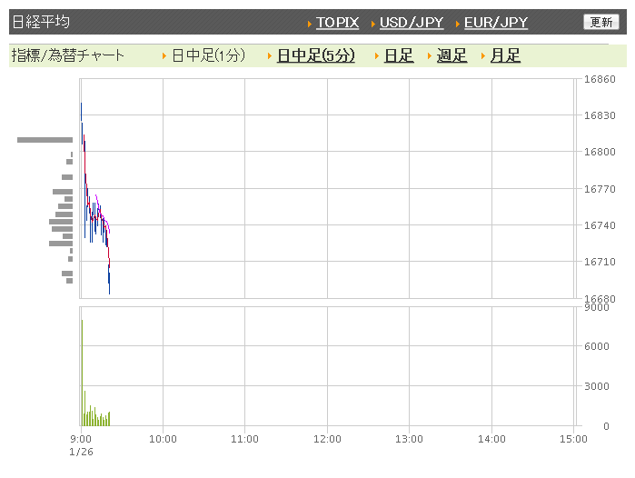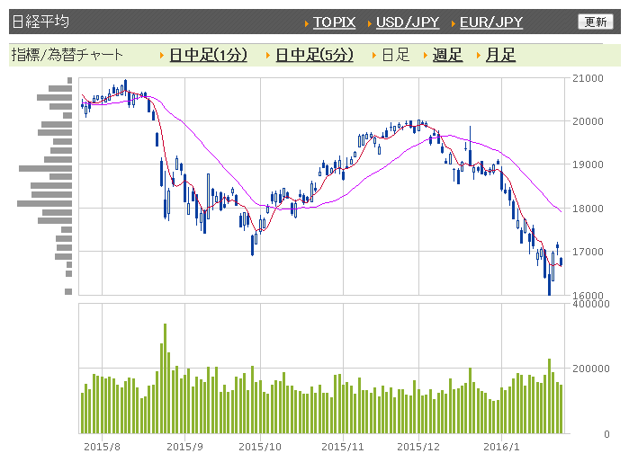 ※2016年1月26日の終値1万6708.90円(-402.01円)