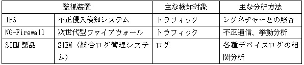 | 監視ポイント | 通信の向き | 分析期間 | 主な分析手法 | 主な分析対象 | |