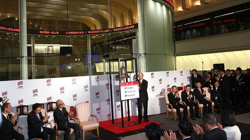 郵政3社の上場セレモニーの様子。ゆうちょ銀行は20日に公開価格を割ってしまった(撮影:尾形文繁)